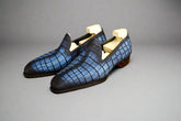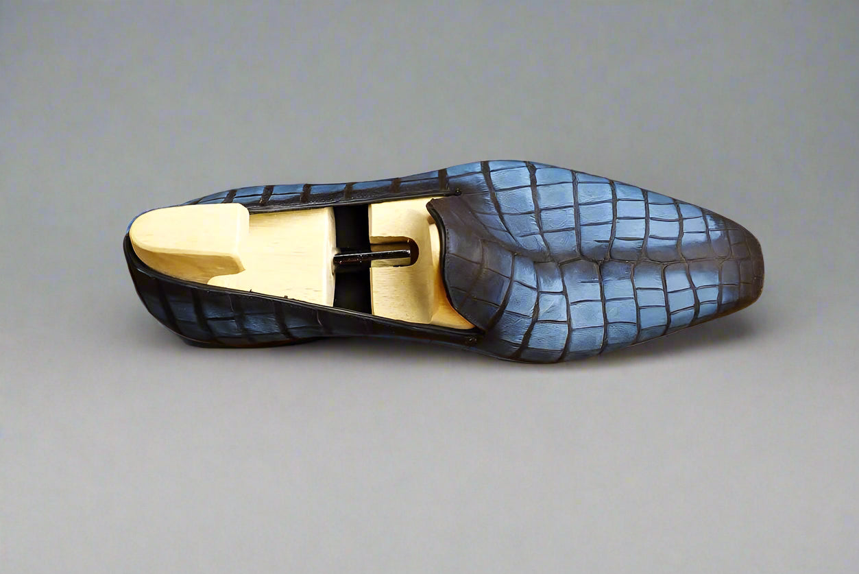 Navy Blue Croc Leather Penny Loafers Slip On Shoes - Loafers Shoes