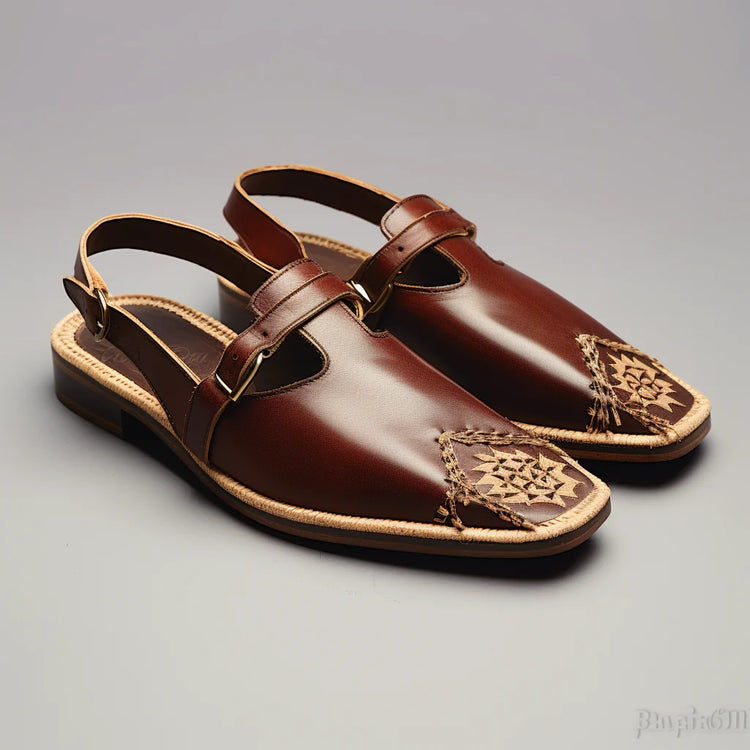Brown Velvet Hand Work Zardozi Peshawari Slippers | Wedding Shoes for Groom | Shoes for Haldi Mehendi Sangeet