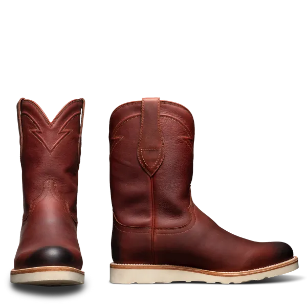 Burgundy Leather Beasley Slip On Zipper Western Cowboy Rubber Sole Boots - Cowboy Boots