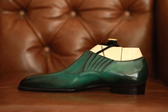 Expertly crafted with green leather, these Midara Slip On Elasticated Loafers With Brogue are the perfect addition to any formal outfit. The elasticated design allows for easy slip-on, while the brogue detailing adds a touch of sophistication. Comfort meets style in these sleek and versatile shoes.